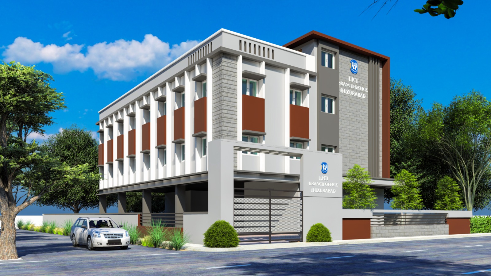 A state-of-the-art commercial office space designed for LIC, featuring open workspaces and collaborative areas.